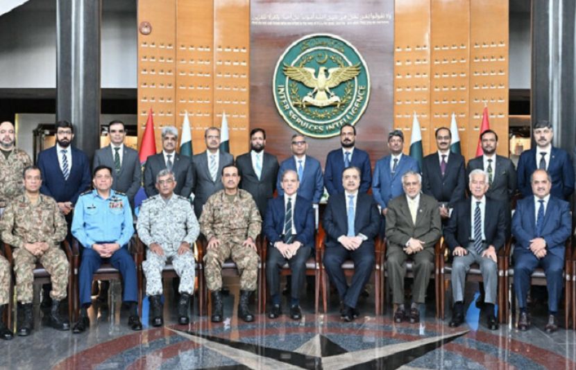 وزیراعظم محمد شہباز شریف نے نائب وزیراعظم اور وزیر خارجہ اسحٰق ڈار، وزیر دفاع خواجہ آصف اور مسلح افواج کے سربراہان کے ہمراہ انٹر سروسز انٹیلی جنس (آئی ایس آئی) کے ہیڈ کوارٹرز کا دورہ کیا۔ وزیراعظم آفس کے اعلامیے کے مطابق اس موقع پر ملکی قیادت کو پاکستان کی مشرقی سرحد پر بھارت کے بڑھتے ہوئے جارحانہ اور اشتعال انگیز رویے کی روشنی میں روایتی خطرے سے نمٹنے کی تیاریوں پر خصوصی توجہ مرکوز کرتے ہوئے سلامتی کی موجودہ صورتحال پر تفصیلی بریفنگ دی گئی۔ملکی قیادت کو علاقائی سلامتی کی پیش رفت اور ابھرتے ہوئے خطرات سے آگاہ کیا گیا جن میں روایتی فوجی آپشنز، ہائبرڈ وار فیئر حکمت عملی اور دہشت گردی کی پراکسیز شامل ہیں۔وزیر اعظم اور ان کے ہمراہ موجود قیادت نے پاکستان کی خودمختاری اور علاقائی سالمیت کی کسی بھی خلاف ورزی کو روکنے اور فیصلہ کن جواب دینے کے لیے قومی نگرانی میں اضافے، بلا تعطل بین الایجنسی کوآرڈینیشن اور آپریشنل تیاریوں کو مضبوط بنانے کی ضرورت پر زور دیا۔وزیر اعظم نے قومی مفادات کے تحفظ اور پیچیدہ اور متحرک حالات میں باخبر قومی سلامتی سے متعلق فیصلہ سازی کے قابل بنانے میں ایجنسی کے اہم کردار کو سراہا۔ وزیراعظم نے کہا کہ پوری قوم ہماری بہادر مسلح افواج کے پیچھے کھڑی ہے، پاک فوج دنیا کی سب سے زیادہ پیشہ ورانہ اور منظم افواج میں سے ایک ہے۔قومی قیادت نے روایتی یا دیگر تمام خطرات کے خلاف وطن کے دفاع کے لیے پاکستان کے دوٹوک عزم کا اعادہ کیا اور اس بات کا اعادہ کیا کہ مسلح افواج قوم کی مکمل حمایت کے ساتھ قومی طاقت کے دیگر تمام عناصر اور ریاستی اداروں کے تعاون سے ہر حال میں پاکستان کی سلامتی، وقار اور عزت کو برقرار رکھنے کے لیے مکمل طور پر تیار ہیں۔