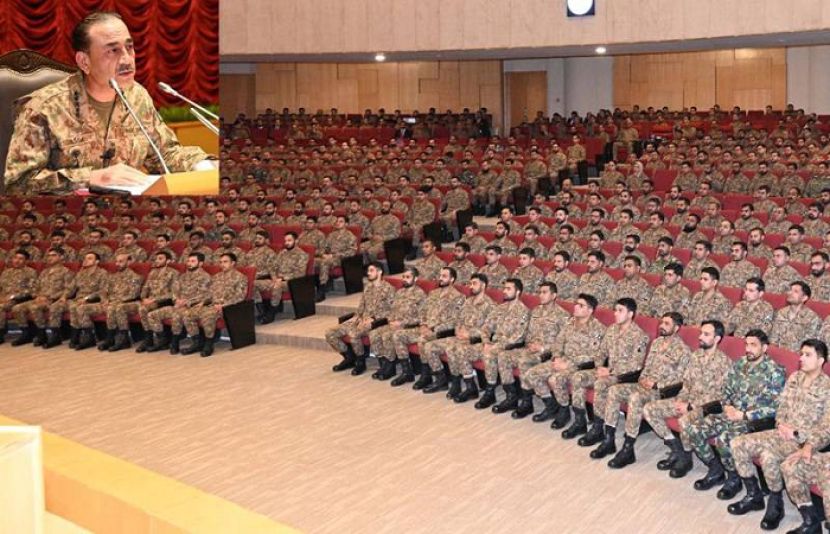 آرمی چیف فیلڈ مارشل عاصم منیر نے کہا ہے کہ پاکستان پر جنگ مسلط کی گئی تو بھرپور جواب دیں گے، خطے کے امن کے لیے مسلہ کشمیر کا پرامن حل ضروری ہے۔ آئی ایس پی آر کے مطابق فیلڈ مارشل عاصم منیر نے شہدائے "بنیان مرصوص" کو خراج عقیدت اور لواحقین سے اظہار یکجہتی کی تقریب سے خطاب کرتے ہوئے کہا کہ معرکۂ حق کی کامیابی قومی عزم اور یکجہتی کا ثبوت ہے۔ فیلڈ مارشل عاصم منیر کے مطابق بھارت کی جارحیت پسندی خطے کے امن کے لیے خطرہ ہے، پاکستان پر جنگ مسلط کی گئی تو بھرپور جواب دیں گے۔ آرمی چیف نے کہا کہ بھارت کی آبی دہشتگردی ناقابل قبول اور غیرقانونی ہے،مسئلہ کشمیر کا پرامن اور منصفانہ حل خطے کے امن کے لیے ضروری ہے، پاکستان میں دہشتگردی کی پشت پناہی بھارتی ریاست کر رہی ہے۔ فیلڈ مارشل عاصم منیر نے کہا کہ دہشتگردی کے خلاف قومی جنگ منطقی انجام تک پہنچائیں گے، مستقبل کی جنگ کے تقاضے جدید سوچ اور جدت کے طلبگار ہیں۔ آرمی چیف کی نوجوان افسران کو جذبے، تحقیق اور عزم سے قیادت کی تیاری کی ہدایت کی اور کمانڈ اینڈ اسٹاف کالج کوئٹہ کی پیشہ ورانہ خدمات کو سراہا۔