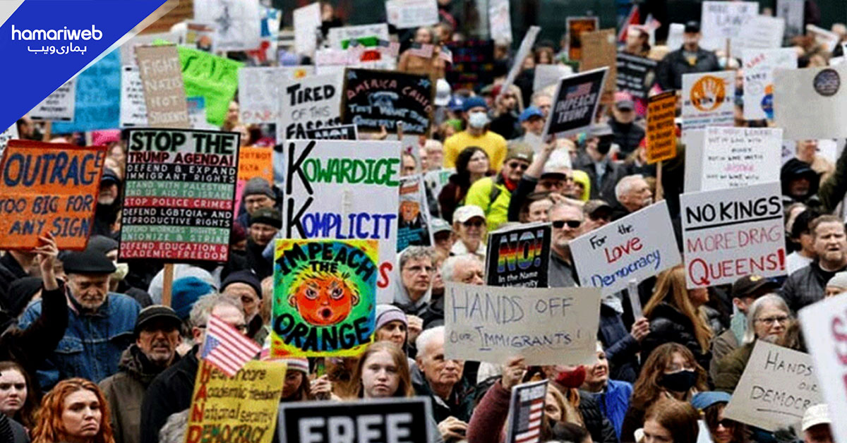 غیر ملکی میڈیا کے مطابق ’’نو کنگ‘‘ کے عنوان سے امریکا کے 2700 شہروں میں احتجاجی مظاہرے کیے گئے، صرف شکاگو میں ڈھائی لاکھ افراد نے احتجاجی مظاہرے میں شرکت کی۔
