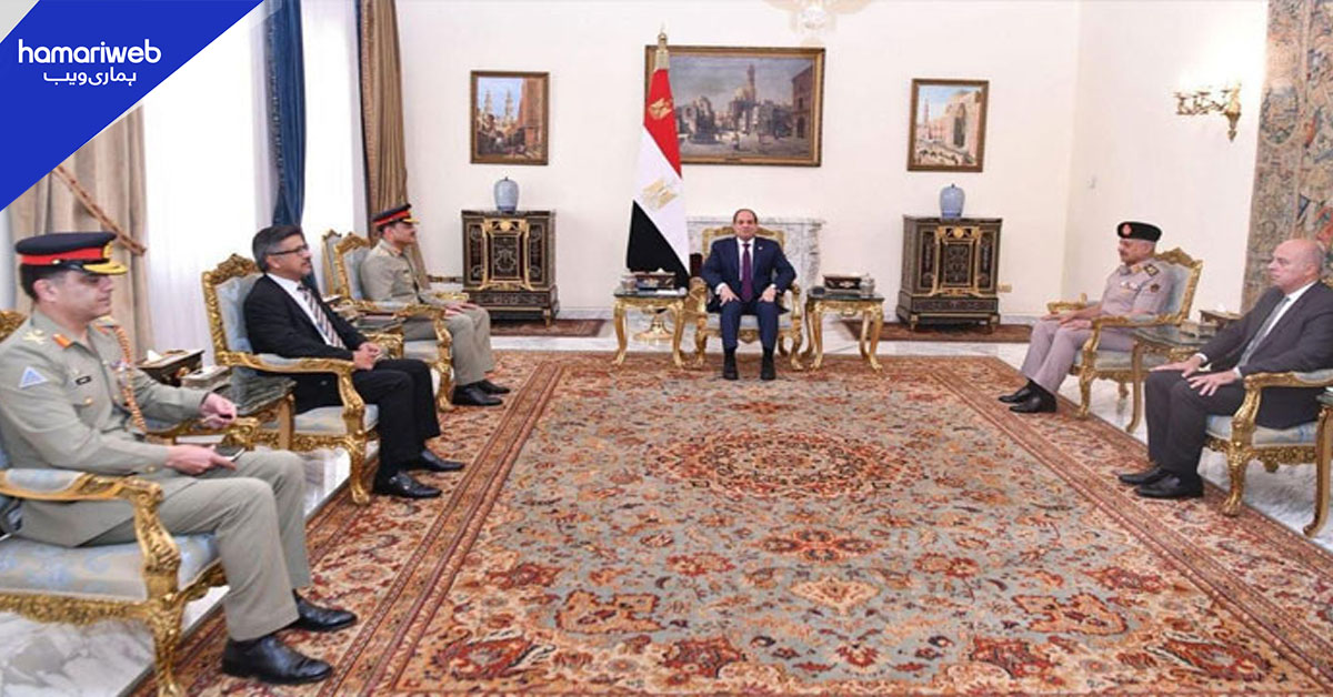 آئی ایس پی آر کے مطابق ملاقات قاہرہ کے اتحادیہ صدارتی محل میں ہوئی جس میں دونوں رہنماؤں نے خطے میں امن و استحکام کے لیے مصری قیادت کے کردار کو سراہا جبکہ صدر السیسی نے عالمی اور امت مسلمہ کے اہم معاملات میں پاکستان کے مثبت اور فعال کردار کو تسلیم کیا۔