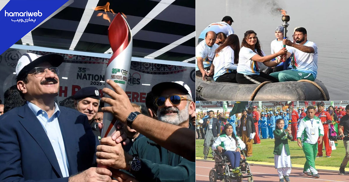 35 ویں قومی کھیلوں کی اولمپک مشعل لاہور پہنچ گئی ہے، جو اگلے ہفتے کراچی لائی جائے گی جہاں پر یہ کھیل 6 سے 13 دسمبر تک منعقد کیے جائیں گے۔