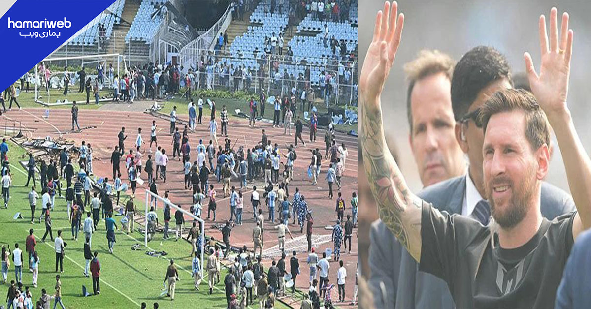 ہفتے کے تقریباً 50 ہزار تماشائی اسٹیڈیم میں موجود تھے اور ان میں سے بہت ساروں نے 12 سے بیس ہزار روپے تک کی ٹکٹس خریدی تھی صرف میسی کی ایک جھلک دیکھنے کے لیے اور جب مایہ ناز فٹبالر اسٹیڈیم پہنچے اور ان کو حکومتی عہدے داران اور فلمی ستاروں نے گھیر لیا، سیلفیاں بنانے لگے اور ان کو گراؤنڈ پر آنے کا موقع نہیں دیا تو تماشائی مشتعل ہوگئے۔